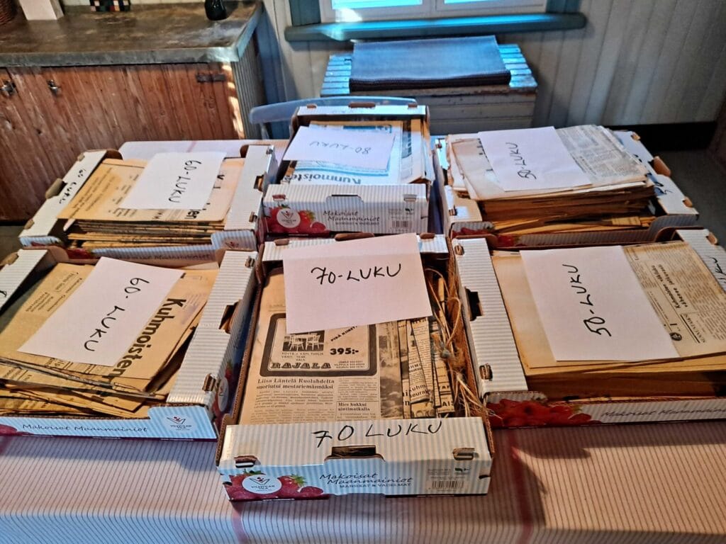 Kurkelan torpassa oli jo toinen tapahtuma tälle syksylle, kun väki kerääntyi sinne tutkimaan vanhoja Kuhmoisten Sanomia. Ajankohta perjantai-ilta sekä yleisurheilun MM-kisat saattoivat vaikuttaa siihen, että lehtiä lukemaan kertyi vain 9 henkilöä.